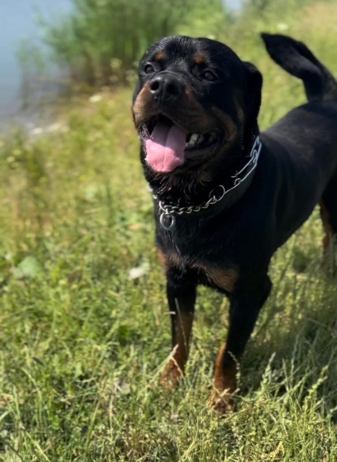 Pies rasy rottwailler reaguje na imie fox lub fuks samiec 4 letni nie ufny wobec obcych moze przebywac u osoby ktora nie ma do niego praw